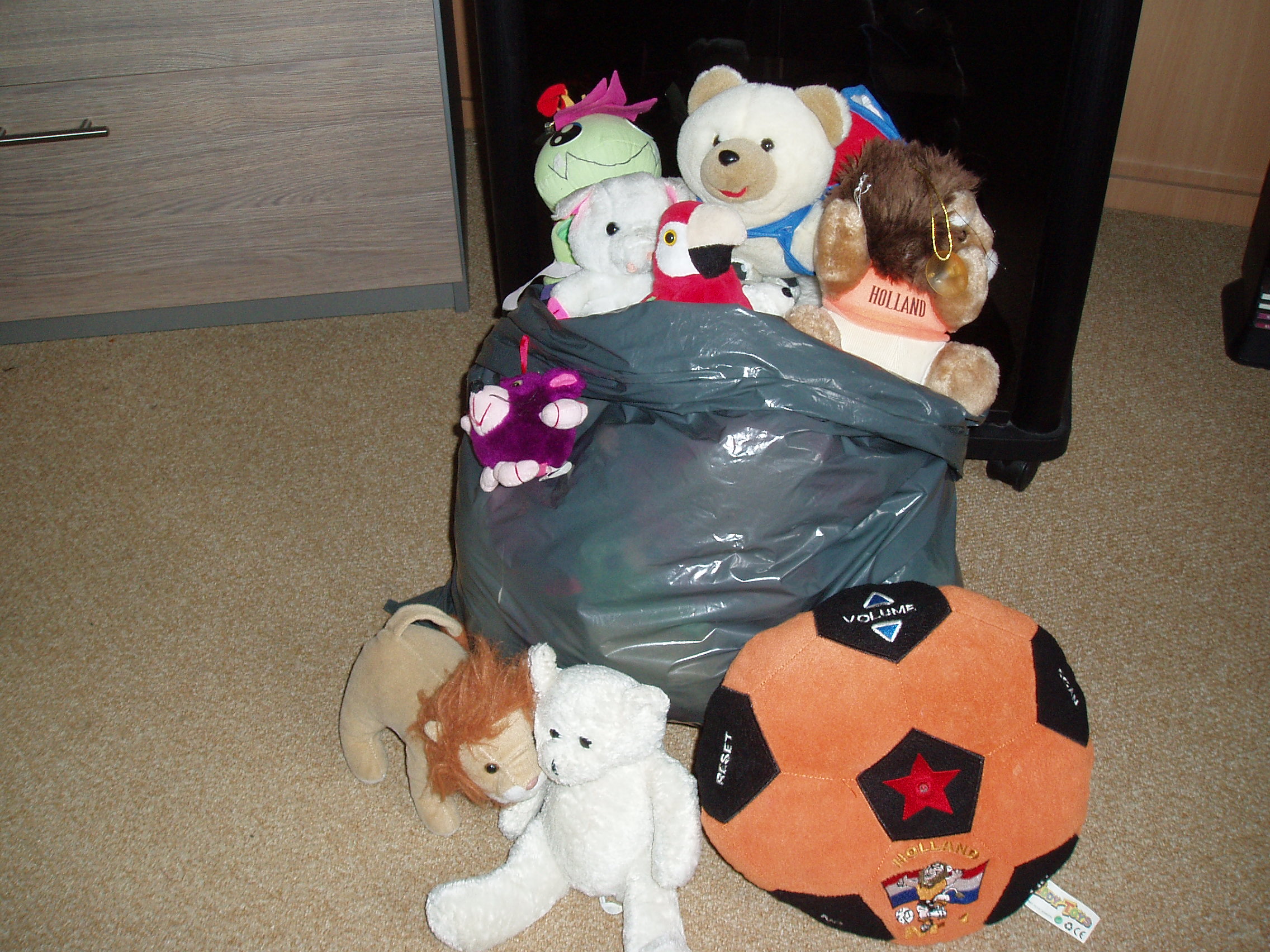 Zak vol knuffels.